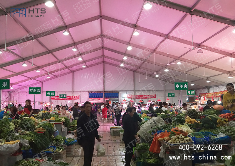華燁海特斯建筑科技 (江蘇) 有限公司作為昆山本地企業(yè),根據(jù)《方案》目前已有3個(gè)區(qū)域進(jìn)行改造,在升級改造期間,過渡期間并搬遷到就近的臨時(shí)鋁合金菜場篷房。根據(jù)不同面積的場地,華燁建筑科技共提供了6座昆山菜場篷房。