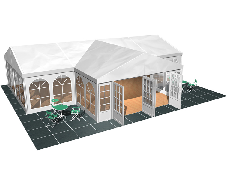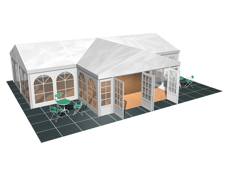 *在篷房配套上,華燁篷房廠家可提供地板、玻璃門、各種墻體。還有篷房專用空調(diào)、地毯、燈飾、承重盤、排水槽等等,也許您的需求可能與上圖所示不同,請(qǐng)直接聯(lián)系我們,了解此結(jié)構(gòu)可用的配件。