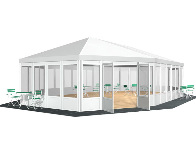 *在篷房配套上,華燁篷房廠家可提供地板、玻璃門、各種墻體。還有篷房專用空調(diào)、地毯、燈飾、承重盤、排水槽等等,也許您的需求可能與上圖所示不同,請直接聯(lián)系我們,了解此結(jié)構(gòu)可用的配件。